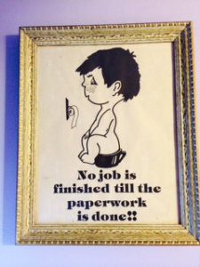 I got this lovely vintage bathroom wall art from an estate. My dad is an estate Executor and I am often dragged in to help with clean outs. It’s amazing the stuff family members – if there are any – leave behind. Half my house is furnished (and decorated) with free stuff, much of it from estates.