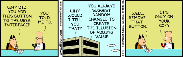 Dilbert shows How “Wireframes” may help when starting a new Project! LOL