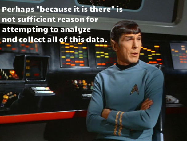 1. Perhaps “because it is there” is not sufficient reason for attempting to analyze and collect all of this data.