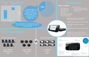This Infographic is about the latest news on Nintendo, but focusing on how the Wii U sales have flopped since its release. Showing the figures for the Nintendo Wii U since release, also comparing the sales with Playstation 4 and Xbox One, and also showing the specs of the Wii U. This Infographic was created by the group, Cheska finding the information and creating the design for it, I created the Infographic on photoshop.