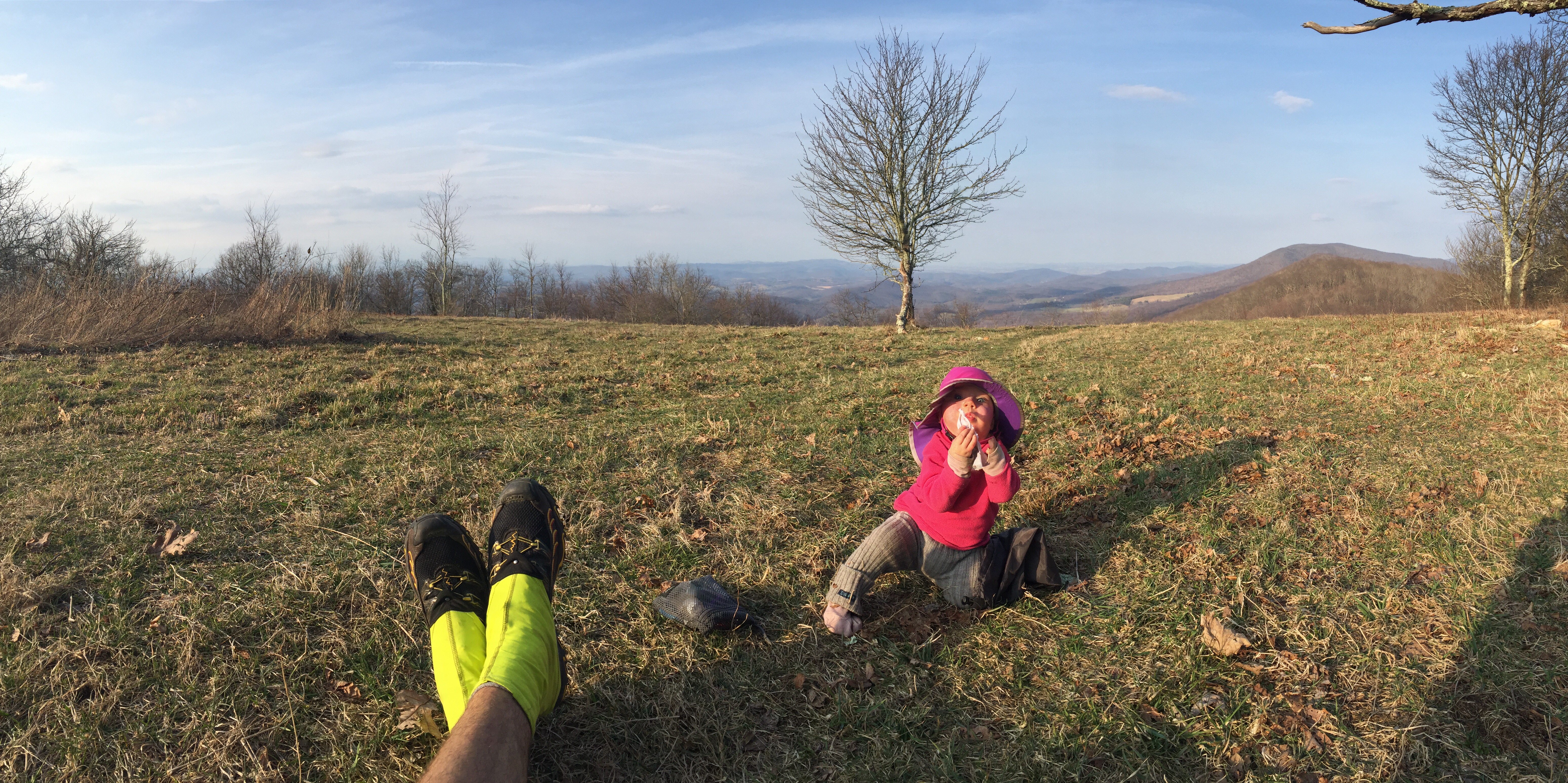 After spending a couple of hours with them, we hugged goodbye and continued up to the VA- WV line. On the Ridge we feasted on fresh new snacks while Ellie played in the leaves and sunshine. The rest of the day was on a beautiful easy ridge with our most rewarding campsite yet- an open bald called Symms Gap.