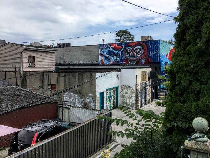 However, no matter where I stood, I could not get in the entire piece. I tried finding new spots to shoot from. When I got to the end of the alley, I saw a house for sale. There was an open house in 1 hour!