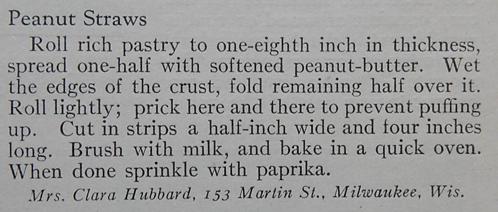 Peanut butter is one of my favorite snack foods, so I was thrilled to find a hundred-year-old recipe for Peanut Butter Straws.