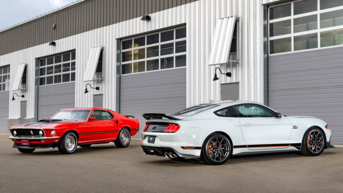 The all-new Ford Mustang Mach 1 fastback is the track day version of the regular Mustang GT but not as extreme as a Shelby. Ford has included some design traits that pay tribute to the original Mach 1 chief among which is the deep-fitted mesh grille with what look like perfectly round nostrils. These mirror the positioning of the extra lamps mounted to the front of the 1969 Mach 1. In the 50 years since then, the Mustang has evolved to feature more effective aerodynamic packages.