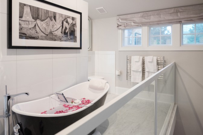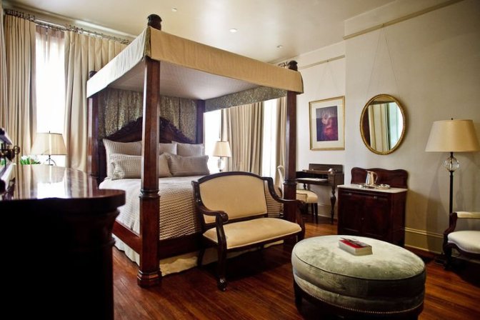 WHAT GETS US IN THE MOOD: Interior designer Barb Shadomy’s artistic influence is everywhere. Each room has its own character: one recalls 1940’s Hollywood with quilted-satin bed covers, another is tucked into the eaves, with leaded glass windows, subway tiles and eye-popping nighttime views of Atlanta’s cityscape. Tea and coffee, fresh fruit and goodies like homemade chocolate cake and caramel shortbread bars are available all day, free of charge.