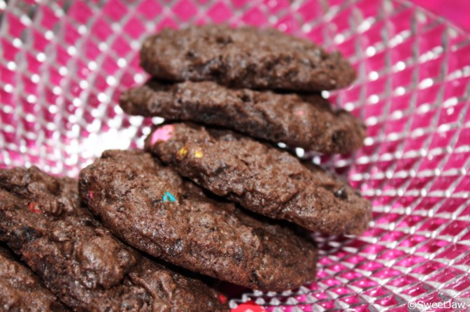 Gems, well who doesn’t loves them, esp. Kids. When your daughter’s friend calls specially to tell that his birthday is approaching and he would like something sweet…your mind can’t help but think on lines of chocolate and gems. Amongst few goodies of cupcakes i decided to add few of these cookies. They are super easy to make and best part I involved cherry during the entire process. she wasn’t much interested with the finished product because she had already scooped the cookie batter and gems from it.