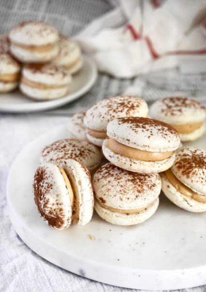 These macarons stuffed with a rich coffee buttercream are the perfect desserts for coffee lovers! They’re delicate and perfect for tea time or for gifting.