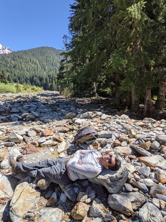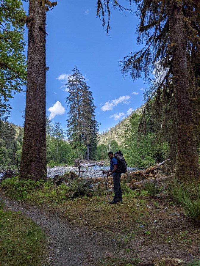I usually neither prefer backpacking nor long hikes. But when Sai suggested 30+ mile, 3 day backpacking hike to Enchanted valley in Olympic National park for this Spring, I agreed just to get out of the daily routine. Sai already being there once in summer, had grand expectations and imaginations from the place which is also known as valley of 10,000 waterfalls. Since my agenda was to just spend some quality time in nature, I kept my expectations low. I was traveling the previous day due to which I hardly had time to rest and prepare. In the morning, I packed whatever I could and left Seattle in Sai’s car by 9 AM.