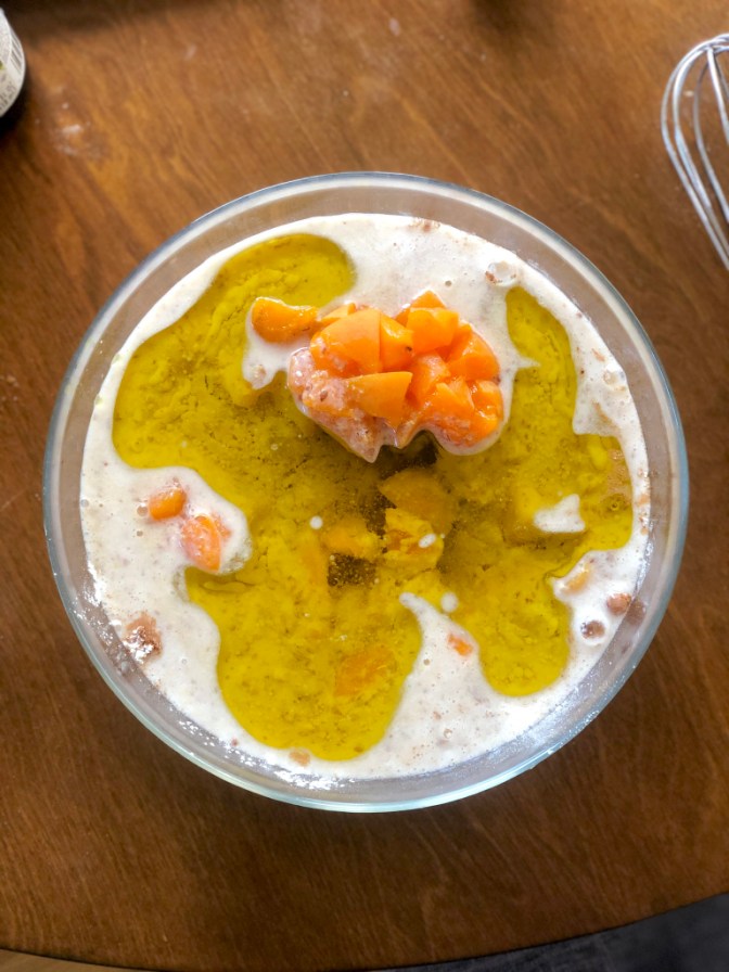 1 1/2 cups chopped fresh apricots — you can definitely use any fruit you want here, fresh or frozen