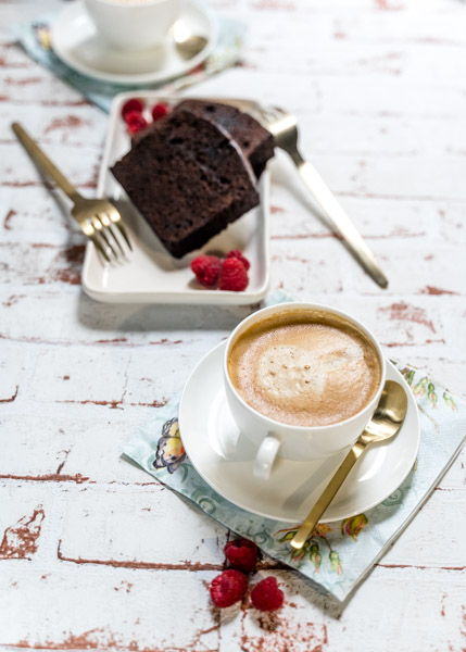 These were shot in natural light in front of the window, but on the floor. The brick background is actually wallpaper, cool huh? Yummy chocolate mud cake and two cappuccinos…I mean the best thing about coffee and cake is sharing with a friend right?