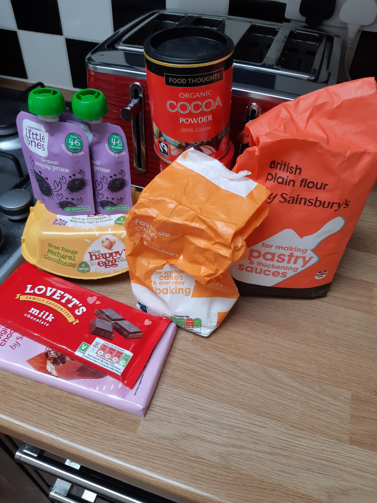 I opted for prune puree as it was recommended for brownies and also one of the easier ingredients to find and purchase. For 1 cup of butter (185g), 3/4 cup (139g) of prune puree was to be used instead. I purchased the closest equivalent I could find in the supermarket: 2 prune puree pouches for babies – I didn’t even know this was a thing. Here are the ingredients for a healthier brownie bake:
