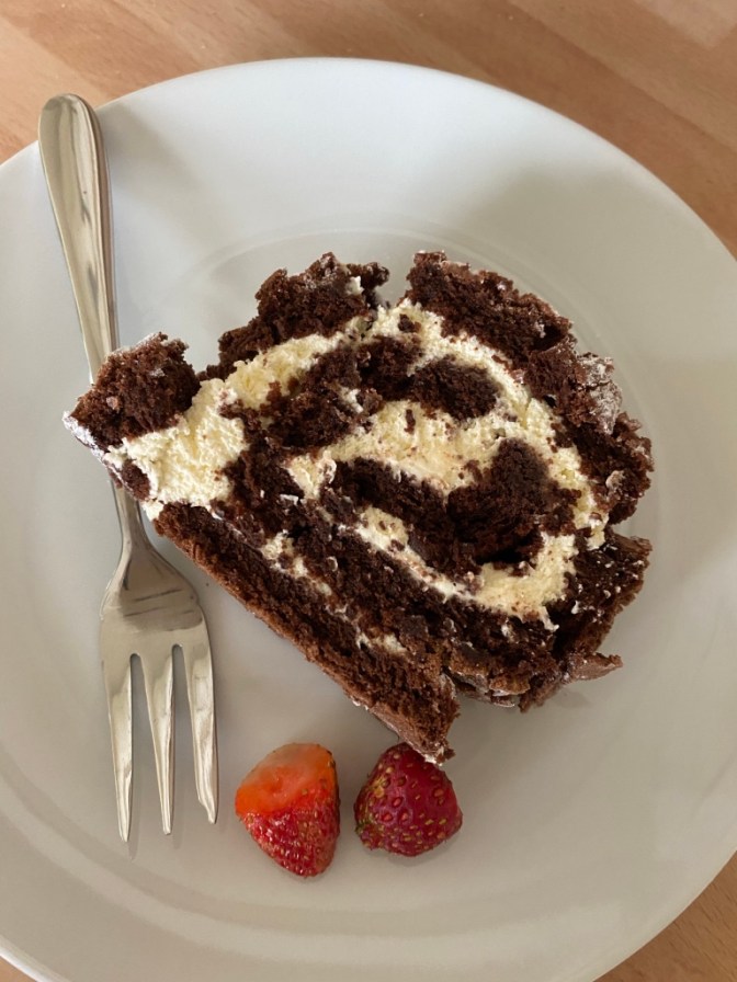Baking roulades and Swiss Rolls always fills me with dread. They look fiddly and messy whenever I make them and the filling never looks neat when I roll them up. Or the actual sponge cracks so much.