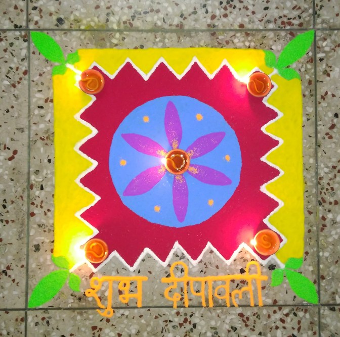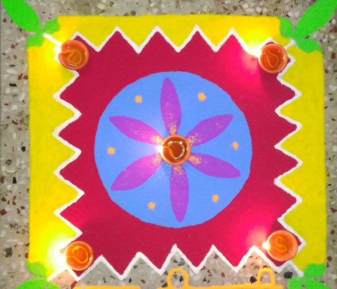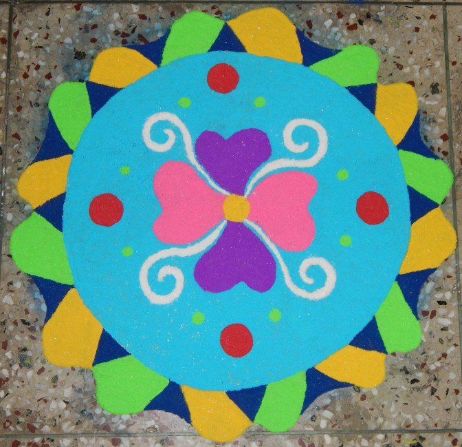 Here are some of the Rangoli designs I’ve made (alongside my little sister) over the years on the festival. I actually needed to make this archive for my own sake, as a record of how I’ve been consistently improving, and also for some much needed inspiration yesterday when I sat down to make yet another Rangoli! 🙂