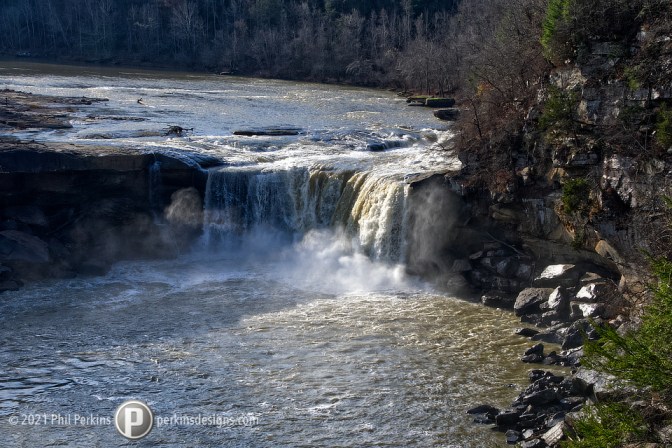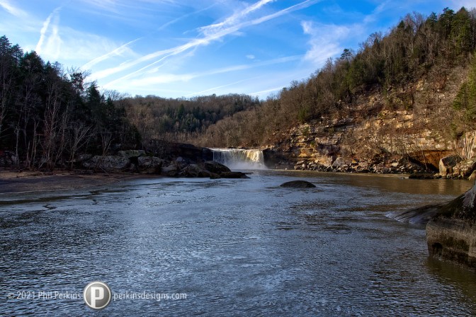 A popular tourist destination located in Corbin, Kentucky, the waterfall can be viewed from several observation areas at the park, as well as from the Eagle Falls Trail – across the Cumberland River.