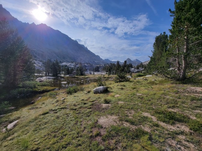 We tore down our camp, and made our way towards the famous Evolution Lake. This beautiful lake is surrounded by hulking mountains all around, lending to its dramatic appearance. This is one of several infamously beautiful spots on the JMT. However, I’ll share my unpopular opinion – it does not make my top five for most beautiful views. That…